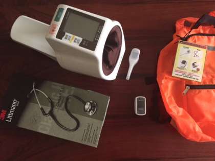 内容は、聴診器・電子体温計・パルスオキシメーター・電子血圧計です。