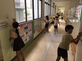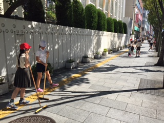今日はクリーンアップデーです。子どもたちが校内と学校前の歩道、校区の公園の清掃などを清掃しました。