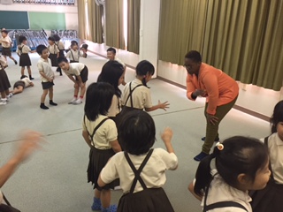 今日の1年生の英語活動には、ダニー先生に入っていただきました。本来はC-NETとして、5・6年生を教えていただいてますが。今日は特別に時間をとっていただきました。
