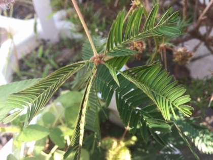 そっと葉に触れると閉じて葉柄を折ります。まるで動物のように動きます。本当にふしぎです。