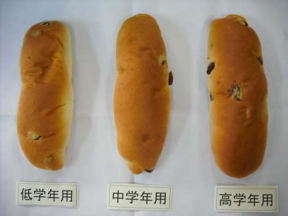今日の給食のパンは、レーズンパンでした。レーズンパンも低学年・中学年・高学年の3段階に分かれています。