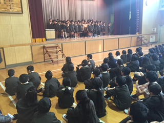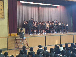 児童集会で昨日の「堀川マラソン」の表彰式を行いました。