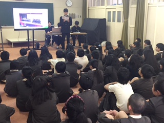 北稜中学校生徒会の皆さんによる学校紹介がありました(6年)