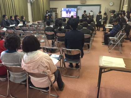 養護教諭から運動器と運動、本校のケガの内容、本校の取組みの説明を聞いた後、健康員会の子どもたちから「ロコモ運動の紹介」、運動委員会から「なわとび運動の紹介」についての発表がありました。