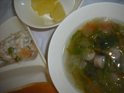 今日のスープには、レタスが使われています。サラダで食べるよりもたっぷり食べることができます。