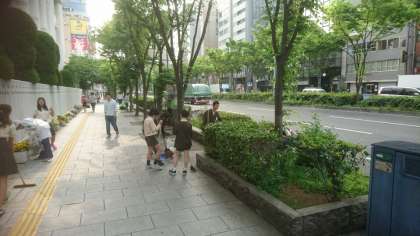 本校では毎月1日に地域の女性会の方、PTAの方、近隣の企業の方とふれあい清掃を行っています。今日は6年1組が担当でした。歩行者や自転車に気をつけながら、1号線沿いの植え込みや道路をきれいにしました。6月は6年2組がふれあい清掃する予定です