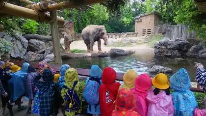 動物園では、雨がぱらぱらしてきましたが予定通りです。