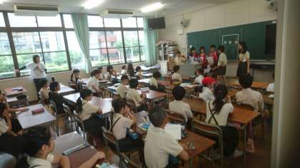 今日からたて割り班活動が始まりました。全校児童を1〜6年生が必ず入るよう60班に分けて班を作ります。1年間を通してゲームをしたりお祭りをしたりオリエンテーリングをしたりします。6年生が1年生の手を引いて教室に連れて行く姿が頼もしく思えました。