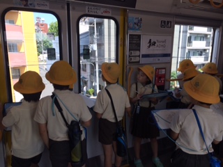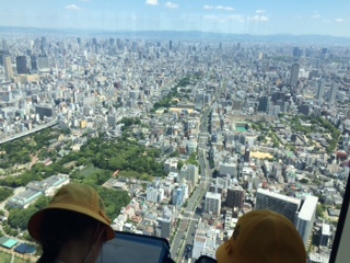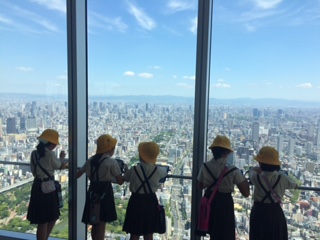 今日は、3年生が環状線一周をしています。天王寺で途中下車して「あべのハルカス」から、大阪市の様子を見ています。天気も良く最高の見学日和です。