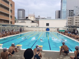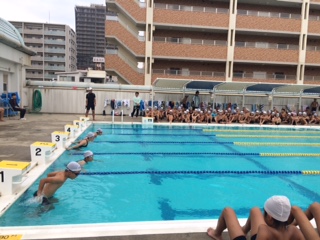 個人種目やリレーにエントリ—して力いっぱい泳ぎ、タイムを計りました。