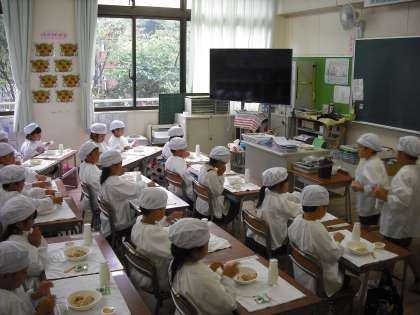 給食室が工事中のため、簡易給食です。食器も紙皿とプラスチックのスプーンです。