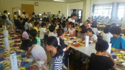 今日のメインの活動であるカッター活動・オリエンテーリングに向けて、しっかり朝ごはんを食べます。