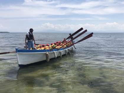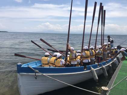 カッターの船が帰ってきました。みんなでタイミングを合わせて漕がないとなかなか前には進みません。みんなで力を一つにすることの大切さを感じたようです。無事に着いてよかったです。