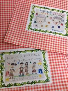 プレゼントを入れた袋のラベルは1年生の子どもが描いてくれました。