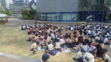 科学館前の広場でお弁当を食べ、楽しみにしていたサイエンスショーの時間です。