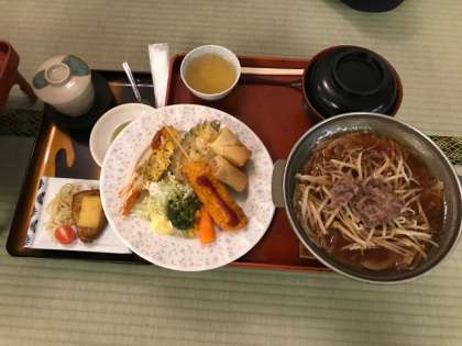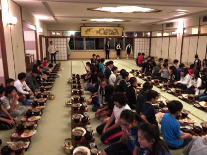 いよいよ夕食です。夕食もいい思い出の一つになることでしょう。おいしそうなものばかりがお膳に並んでいます。