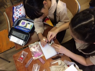 小物やマスコットを作ったり編み物をしたりと、思い思いの材料を持ってきての製作活動です。