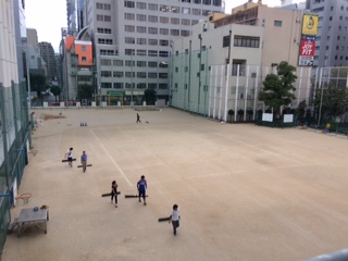 今、運動場の整備を進め、マーチング発表会に向けて準備をしています。