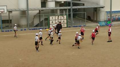 今日は6年生3クラスが、タグラグビーをしました。昨年と同様、地域の方にゲストティチャーとして動き方などを教えていただきました。トライを目指してステップを踏み懸命に走っています。