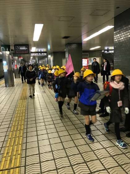 地下鉄の乗り換えも、子ども達の案内で行います。
