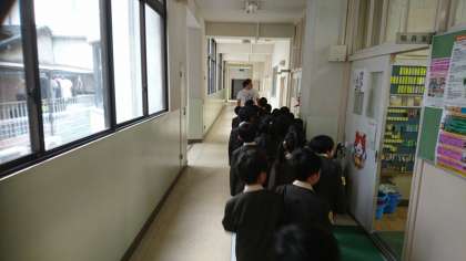 今日は、1年生が学校探検をしました。2年生といっしょに本格的な学校探検は4月27日にあります。今日は、これから使う大切な教室をクラスごとに回りました。