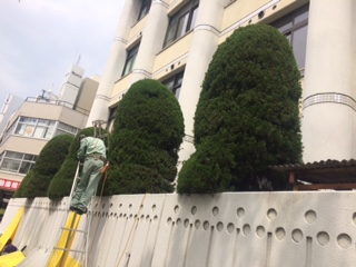 この4日間、管理作業員さんの営繕班の方々が、学校中の草木の剪定をしてくださいました。