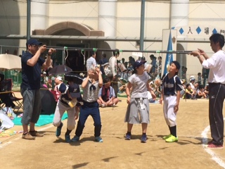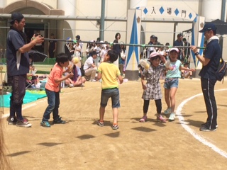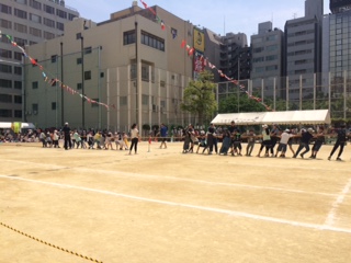 午前中には、開会宣言、扇町総合高校吹奏楽部による演奏に続いて、スプーンリレー・玉入れ・綱引きなどが行われました。