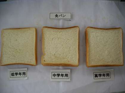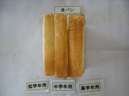 また、今日のパンは食パンです。食パンも低学年・中学年・高学年の3段階に分かれています。大きさはかわりがありませんが、厚さが違います。
