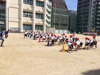 4つのクラスが運動場にいますが、まだまだ運動場が広く見えます。