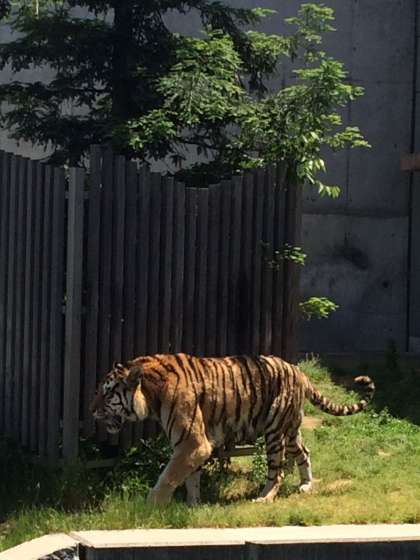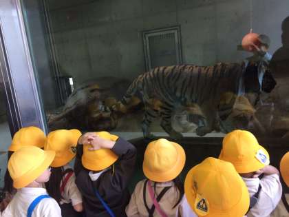 大きなトラが「のしのし」歩いています。子どもたちは、トラの動きにくぎ付けになっています。