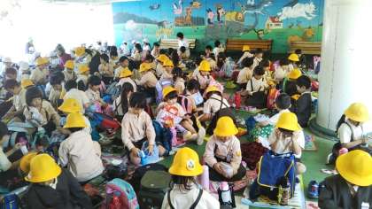 待ちに待ったお弁当の時間です。お家の人が作ってくれたおいしいお弁当です。