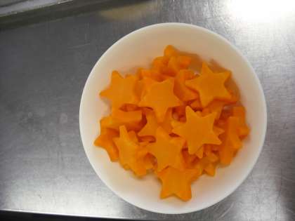 クラスに2〜3こ程度「ラッキーにんじん(星形にんじん)」が入っています。