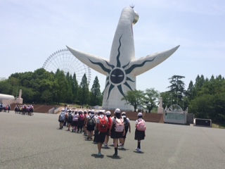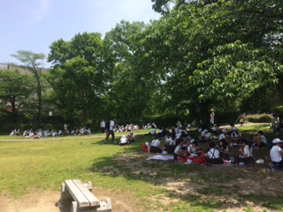 太陽の塔の横を通り抜けて、いよいよ楽しみにしていたお弁当の時間です。木陰で友達と食べるお弁当は最高です。