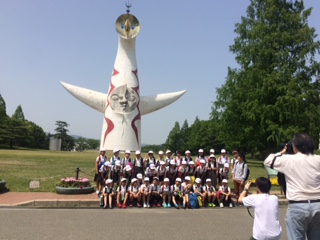 お弁当・自由遊びの後、太陽の塔の前で写真を撮り、帰りました。