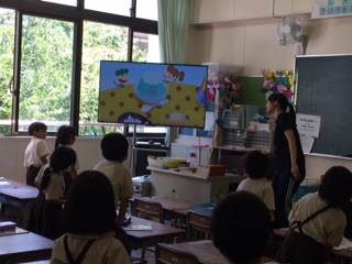 毎日午後1:35〜1:45は全学年英語活動の時間です。