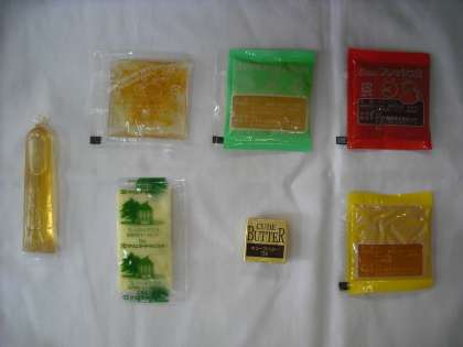 大型コッペっパンと食パンには、パンにぬるジャム類が付きます。大阪市で登場するジャム類は、いちご、ブルーベリー、マーマレード、アプリコット、りんご、はちみつ、マーガリン、バターがあります。