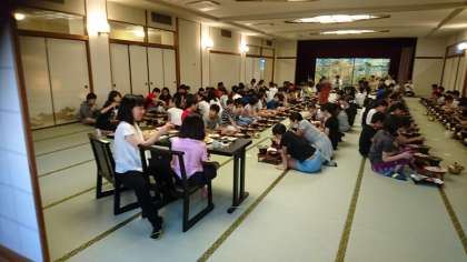 夕食の時間。お座敷で一人ずつのお膳でいただく夕食です。