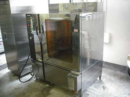 鶏肉の甘辛焼きは、焼き物機(スチームオーブン)を使ってつくります。