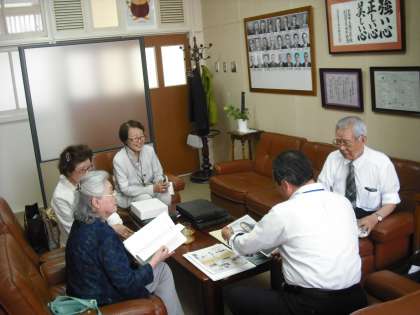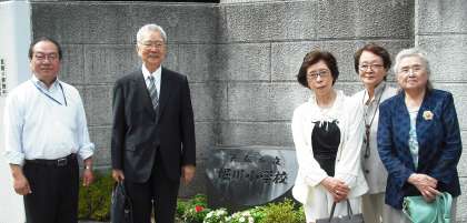 「堀川小学校は私の心の原点です」とおっしゃる先生は、6年間の小学校生活で学習や絵画・スポーツに打ち込まれ、輝かしい足跡を残されました。校内をご案内しながら懐かしい当時の様子をお話いただきました。