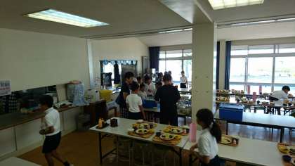 今日一日の活動のエネルギーになる朝食をしっかり食べます。眠たそう顔をした人はいませんか?昨晩はちゃんと寝れたかな?水分補給も忘れずに!