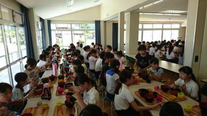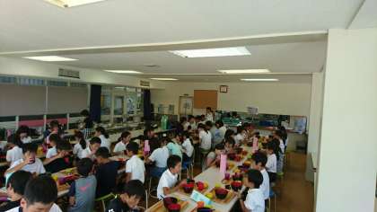 昼食の時間です。カッター活動で、おなかがぺこぺこかな?