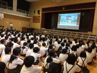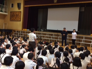 講堂でDVDを見た後、消防署・区役所の方の仕事についての質問コーナーです。