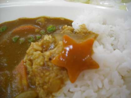 今日のカレーライスは、小麦粉の代わりに米粉を使用したカレールウの素が使われています。卵が入っていないノンエッグドレシングは、キャベツのサラダにかけて食べます。また、りんごは、1年生から3年生は食べやすいように皮をむいて、4年生から6年生は皮にも栄養があり、皮も食べてほしいことから皮付きのまま提供しています。
