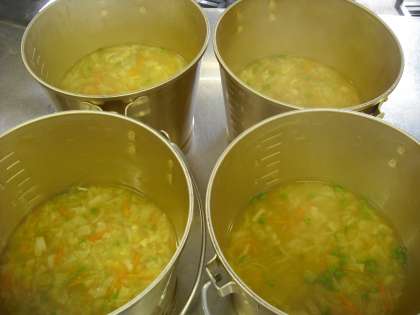 マカロニとキャベツのスープは、小麦の除去対応献立です。小麦アレルギーの児童用にアルファベットマカロニを除いたスープを提供しています。