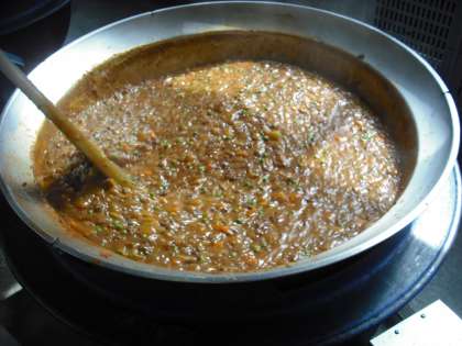 ハヤシライスは、いつも小麦粉を使った手作りブラウンルウを使用しています。