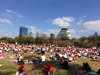 西の丸庭園で待ちに待ったお弁当です。班のみんなで輪になって「いただきます!」