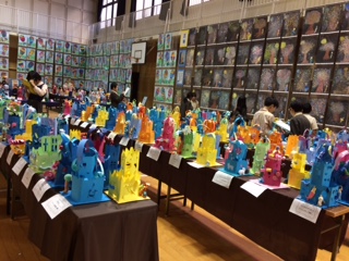 保護者の方も鑑賞に来られる中、子ども達もクラスごとに鑑賞に訪れます。