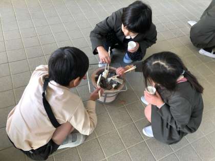 と、お餅に気を取られますが、炭を足したり、あおいで火を調節したり、七輪の使い方を聞きました。