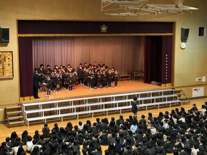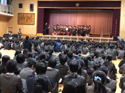 朝の児童集会は、昨日行われた堀川マラソンの表彰式でした。