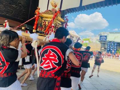 天神祭が始まりました。24日には、子ども神輿が天神橋筋商店街などを練り歩き、子どもたちの元気な掛け声が商店街に響き渡りました。法被に身を包んだ子どもたちは、生き生きとした表情でお祭りの雰囲気を楽しんでいました。(写真は天三神輿が大阪天満宮に入るときの様子です)